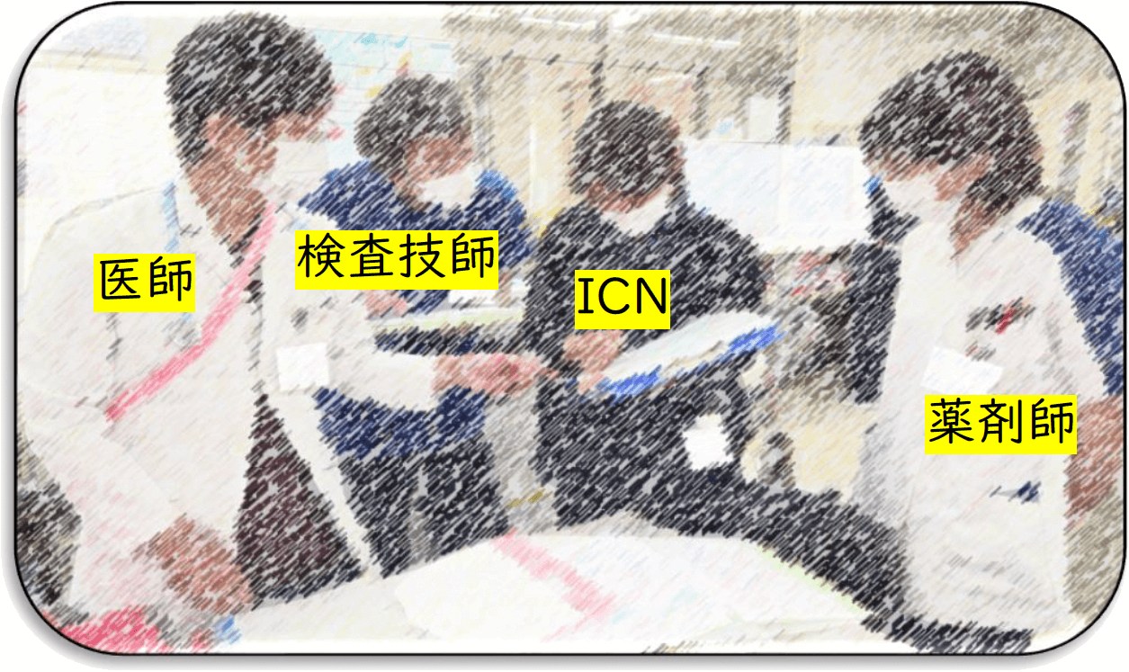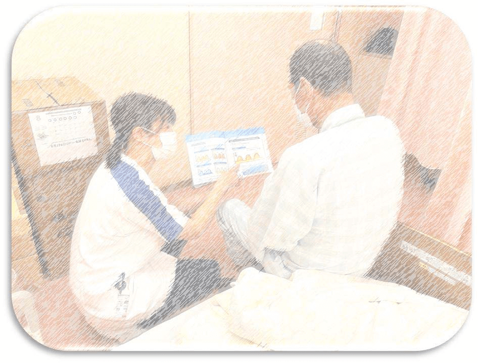 - 回診・カンファレンス、チーム医療、外来での指導(術前外来、自己注射指導等)など。