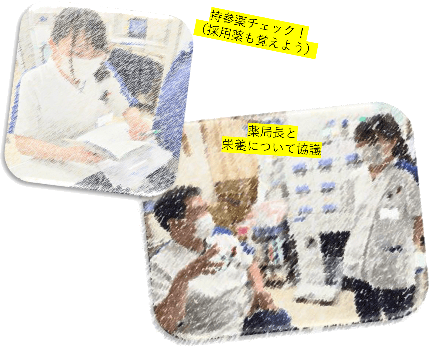 - 薬剤管理指導業務、病棟薬剤業務、持参薬鑑別、入院時・退院時指導